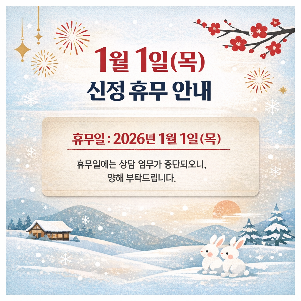 2026년 1월 1일 목요일은 공휴일로 상담이 중단됩니다.